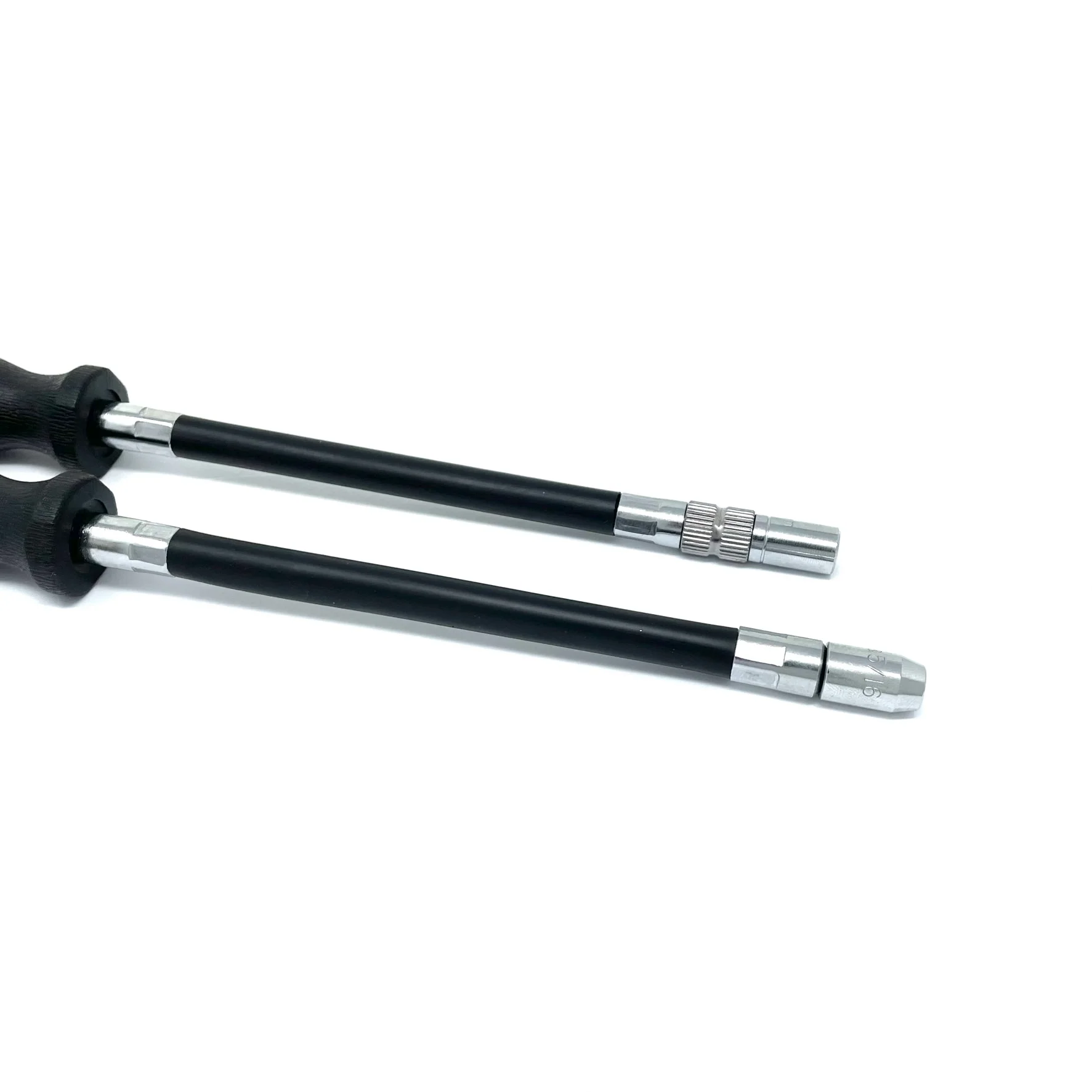 - Flex shaft with flip socket heads to service hose clamps, body panels, trim panels, etc. in hard-to-reach areas