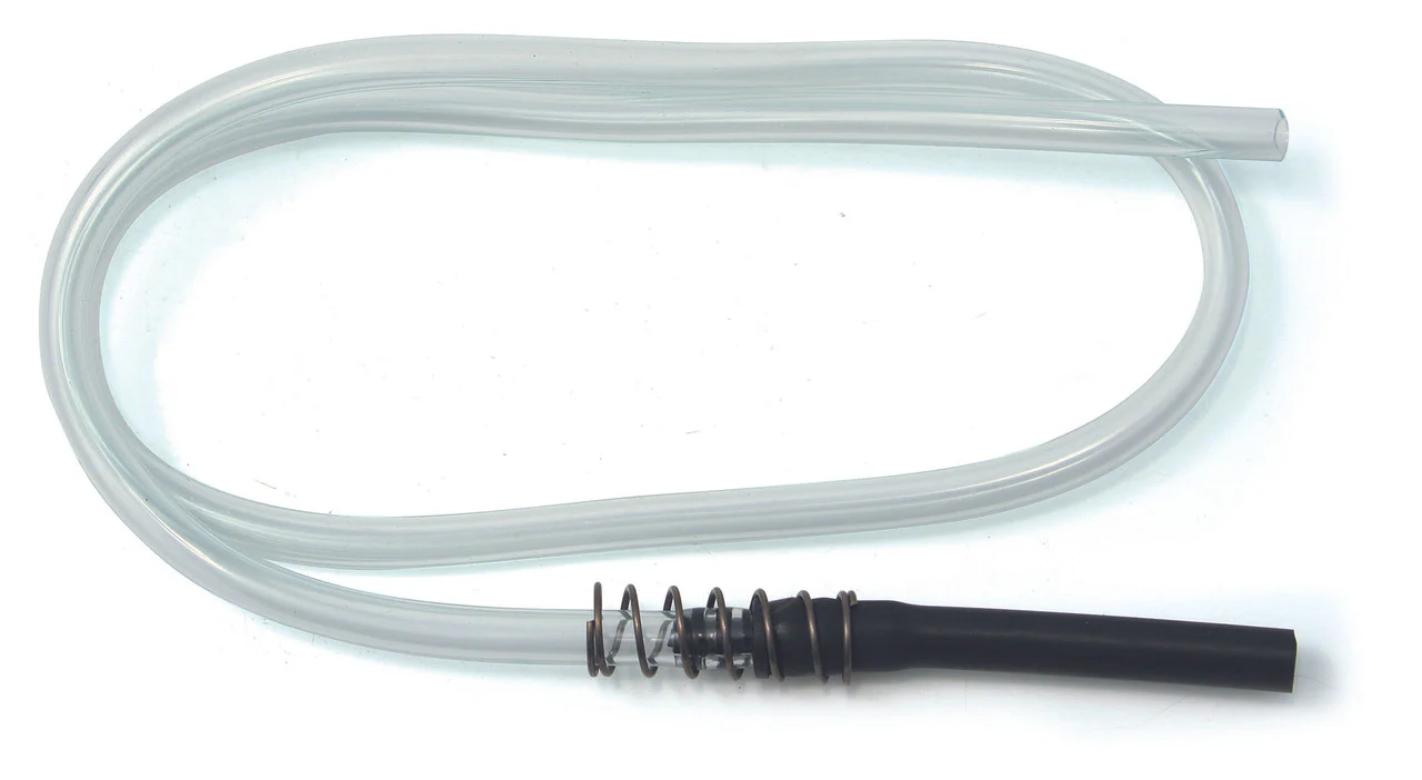 - Open the bleeder screw of the wheel to be bled and install the black rubber hose end of the tool over it. Place the other end in a jar or can.