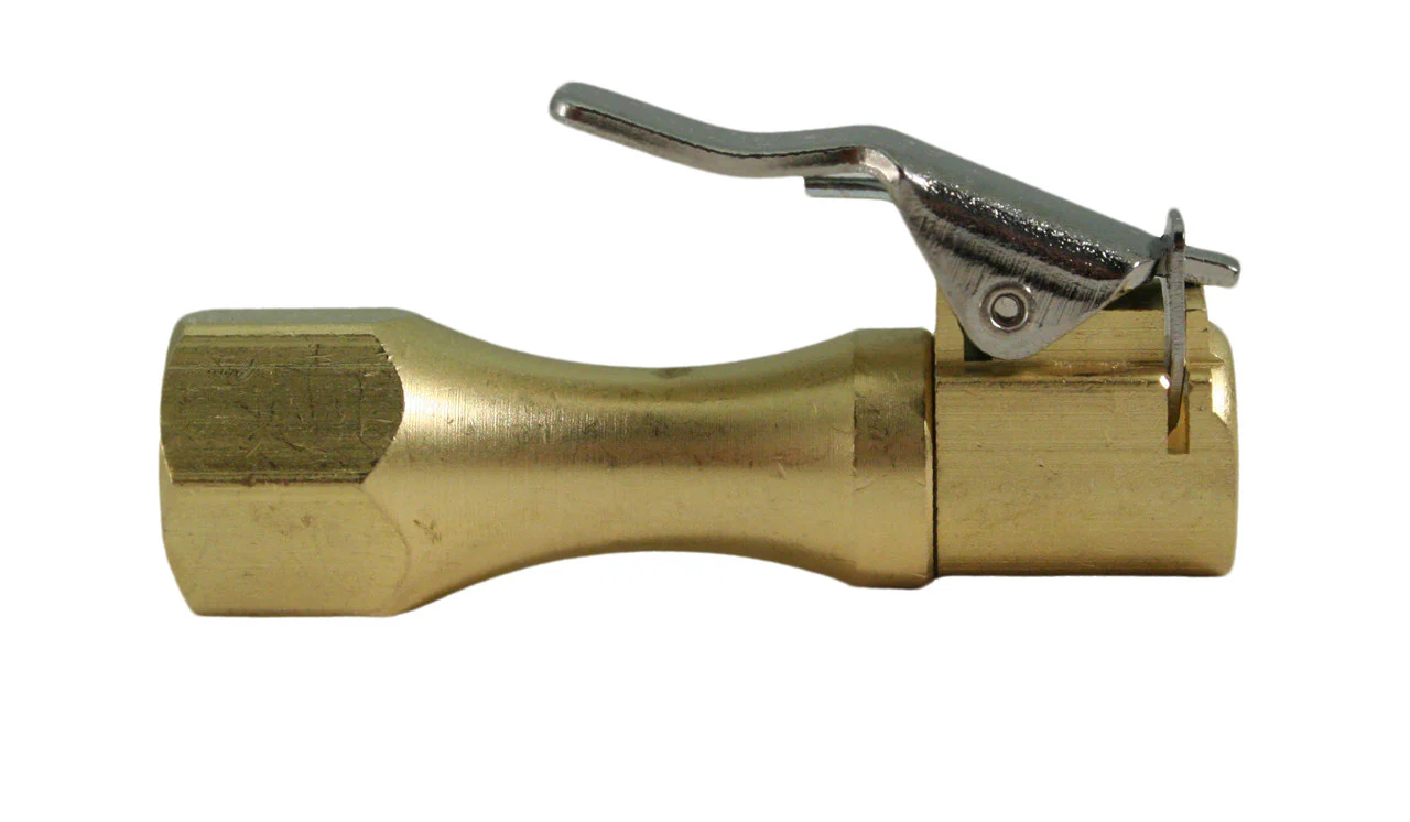 - Thumb lever locks onto valve-stem while inflating tire