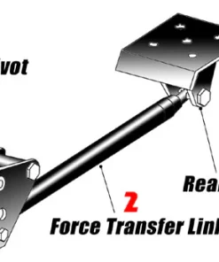 Tremendous benefits can be realized when our Cal-Trac traction bar system is installed on a leaf spring suspended 1966-71 Ford Fairlane. Traction bars were developed to achieve specific goals to improve high power traction while staying within hard set NHRA parameters. The combination of these components change the pushing point on the car by redirecting the turning action (spring wrap-up) of the rear axle through the #2 Force Transfer Link into the #1 Front Pivot. (See detailed image). The front pivot spring stop resists this turning motion and also controls the bending of the leaf spring at it’s thinnest section. The push into the Front Pivot helps the cars weight shift towards the rear of the car, because of new directed angle of force toward the front of the vehicle. (The ‘Instant Center’ moves further forward). This is where the system emulates a Four link system.