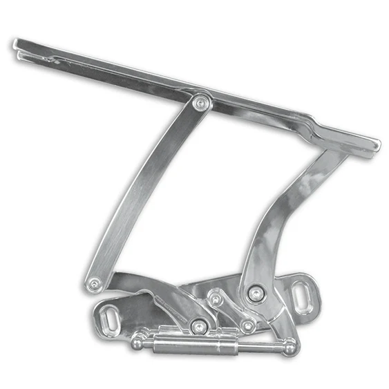 These trick billet aluminum hood hinges really improve the looks of your 1970-81 Chevy Camaro engine compartment. The hinges are CNC machined from solid pieces of 6061-T6 billet aluminum in the USA. The hinges utilize a stainless steel nitrogen filled strut in place of the inferior stock compression springs to actuate the hood. The hinges use high quality sealed ball bearings at all pivot points for an ultra smooth and reliable operation. Designed as direct fit, “bolt on” units, the hinges utilize the stock mounting holes with elongated slots for ease of gap adjustment. Whether you are looking for the ultimate in under-hood customizing or just want to replace your weak stamped-steel stock hood hinges with these billet hinges are the answer. The hinges are available with a raw machined or bright polished finish. Add $70.00 for polished