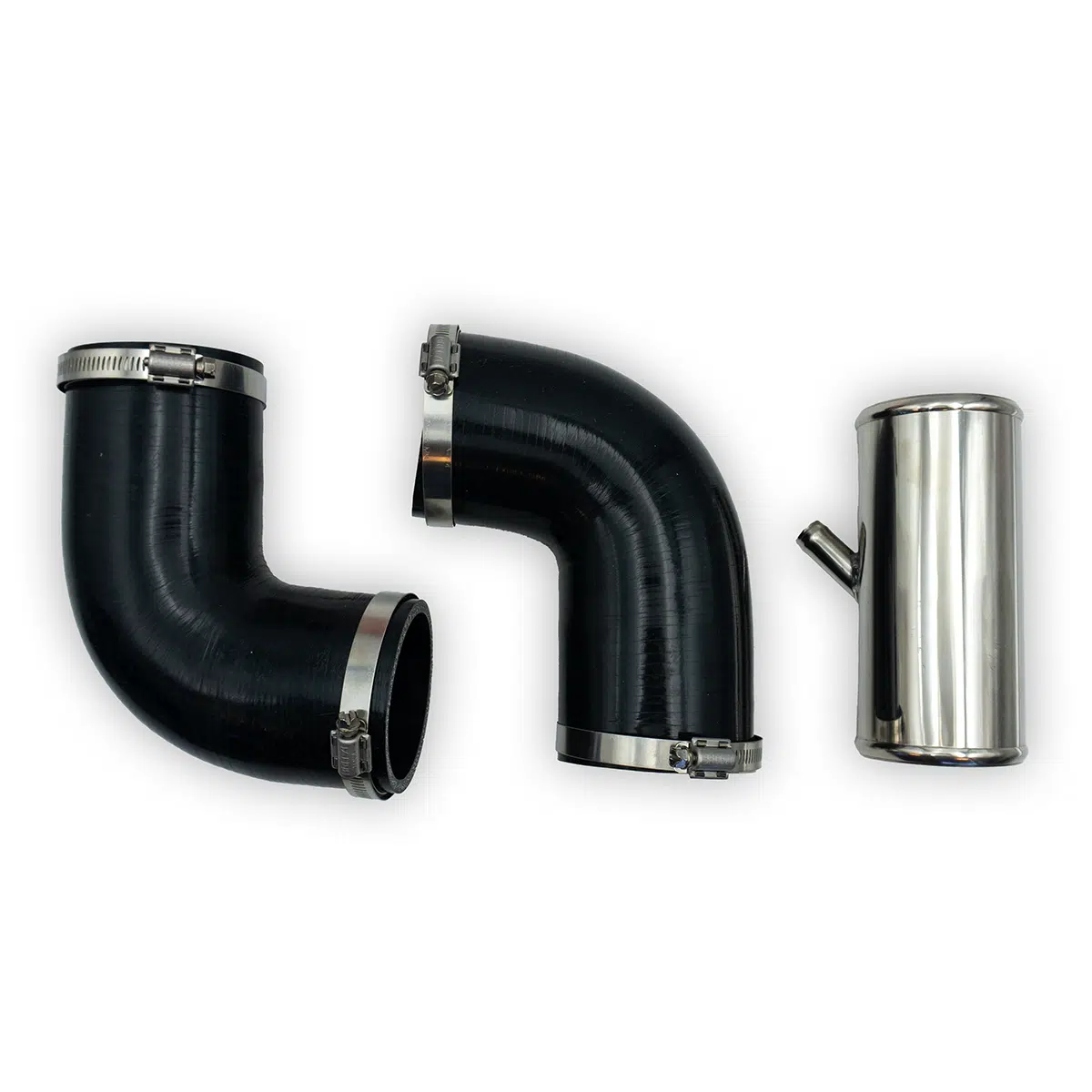 - To connect the turbo we can supply two silicone elbows with a 3” pipe (with 19mm spout for breather pipe). Clamps also included.