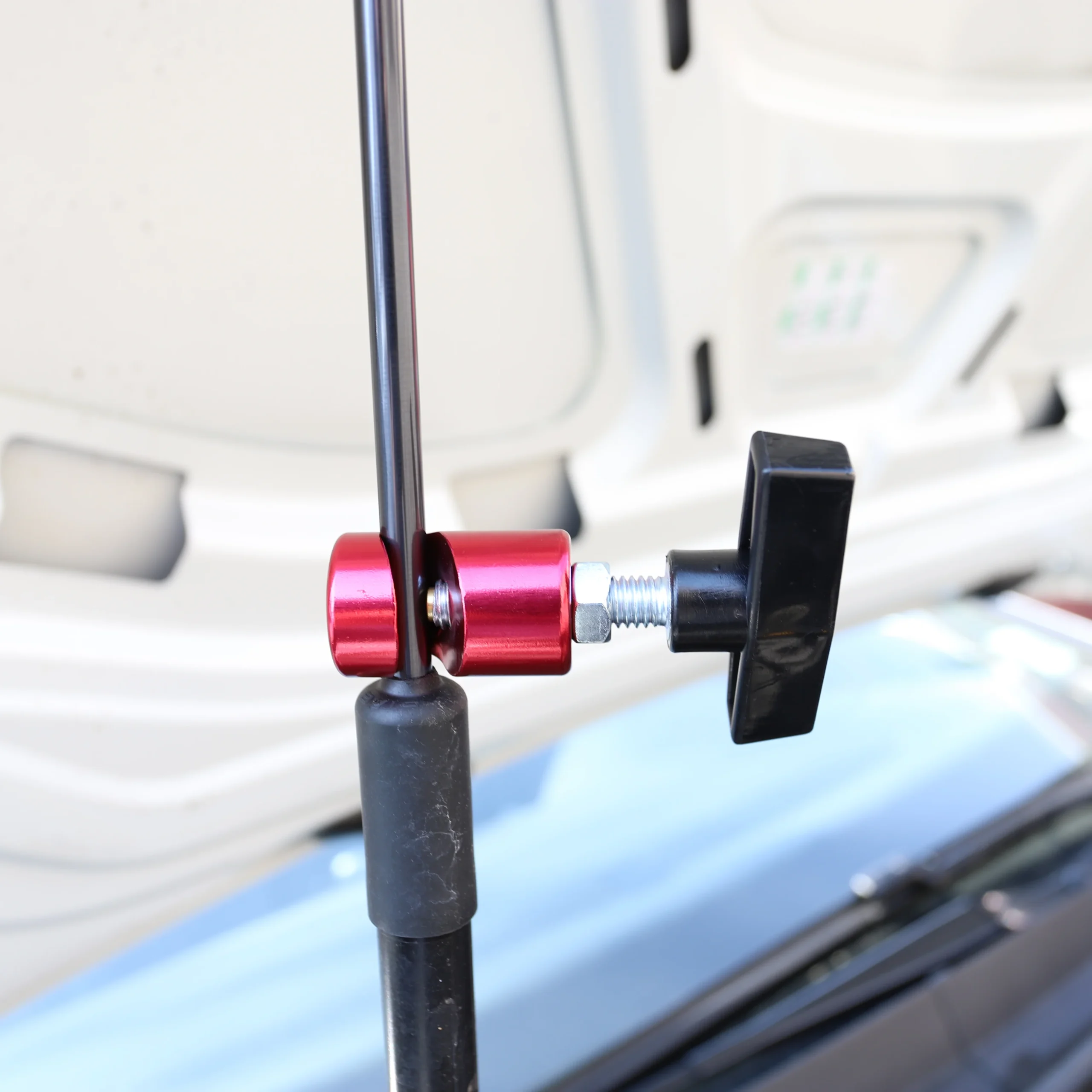 - Clamps onto lift support to safely keep hood or trunk open while working