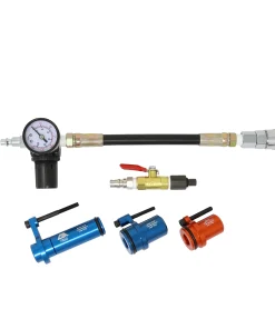 - Fit the assembled adapter to the oil drain plug hole, open the air release valve, and increase the air pressure to 7-8 PSI. The remaining oil in the system will flush out.