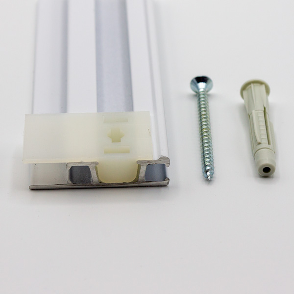 If installing rails in chains side by side, fit one brackets right behind where two rail join. That will ensure smooth alignment. Rails can be painted before of after installation if needed. This system offers an option to fit corner connectors. It means that rails can be fitted around rooms with no gaps.