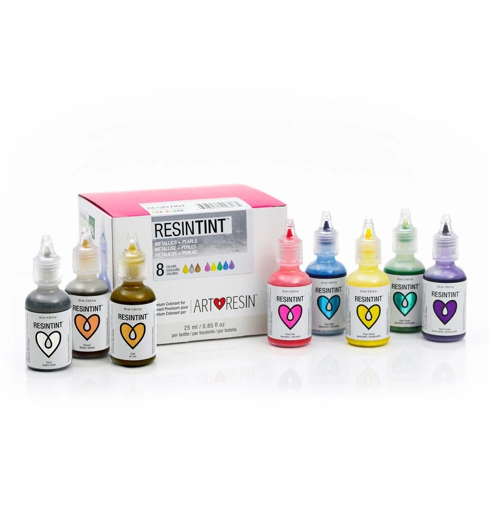 ARTRESIN-8 METALLICS & PEARLS-Metallic Gold, Pearl Pink,Pearl Yellow,Metallic Silver,Pearl Green,Pearl Blue,Metallic Bronze,Pearl Purple-25 ml / 0.85 fl oz EACH.