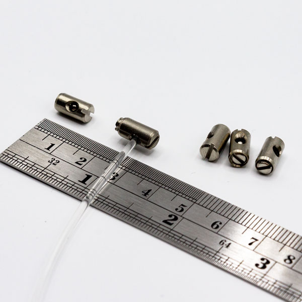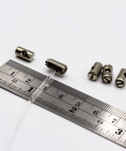 The Barrel Anchor Clamp is 10mm long with a screw on the side that allows you to lock a perlon wire into it. It can then be inserted into a Click Rail or Contour Rail (Wall Hanging Systems), Top Rail or Up Rail (Ceiling Hanging Systems) to hang your pictures and artwork. A transparent perlon wires help the hanging system blend nicely with your wall.