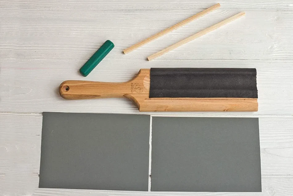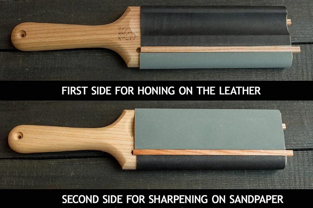 Crafted from top-quality materials, including a sturdy Ashwood base, this sharpening system guarantees durability and reliability. Its dual-sided construction contains replaceable sandpaper on one side and smooth leather on the other, catering to both sharpening and polishing requirements with exceptional efficiency.