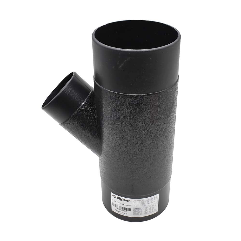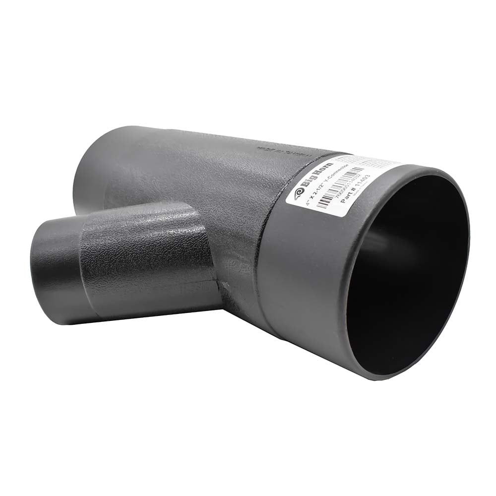 Big Horn’s 4-Inch by 2-1/2-Inch Y-connector is used to branch off your dust collection line like a regular Y connector, while reducing your branch off down to 2-1/2-Inch. For best connection use hose clamps (not included).