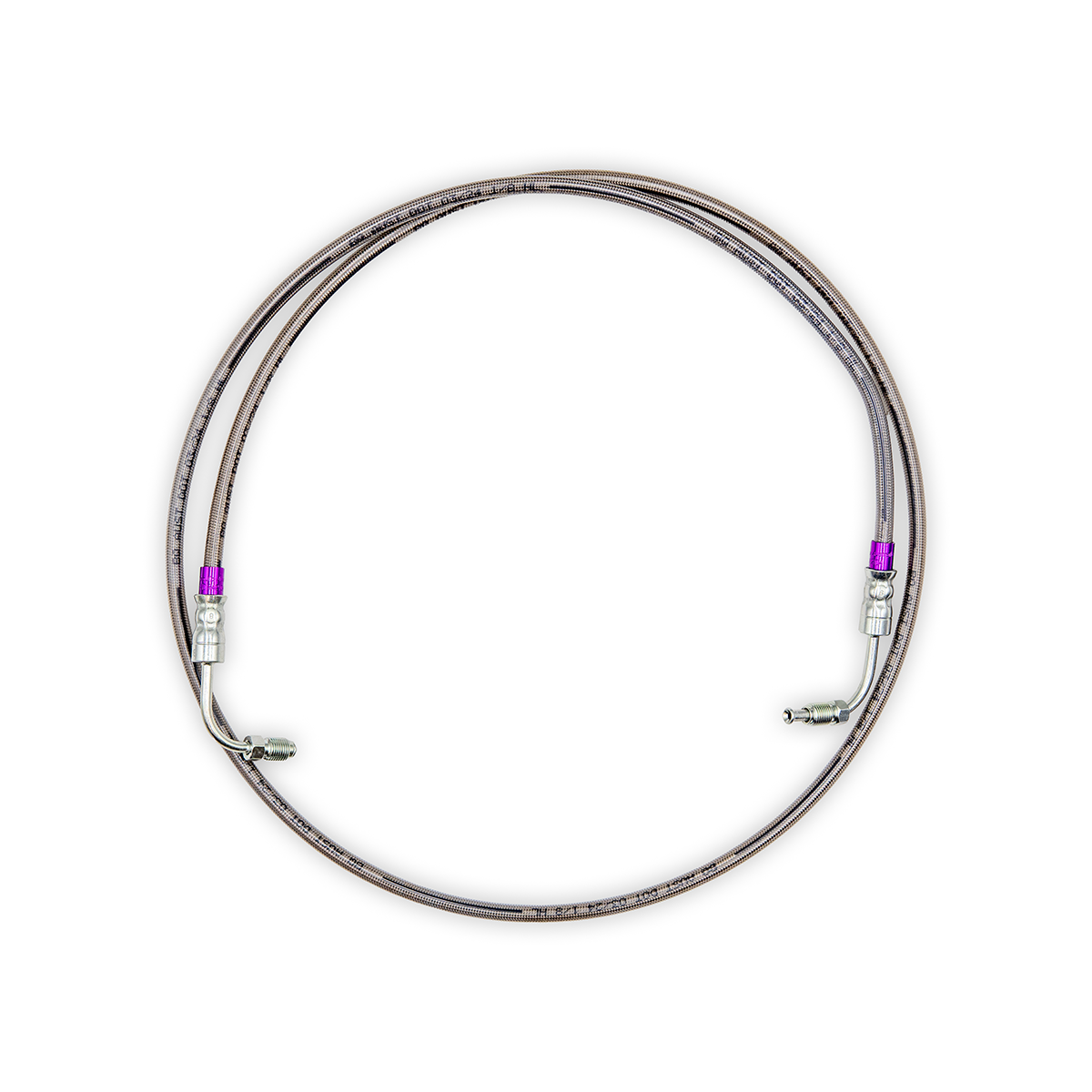 Improve the feel of your heavy duty clutch with this braided flexible line which bypasses the factory damper. Suitable for NPC Clutch upgrades, it replaces the entire line from master to slave cylinder.