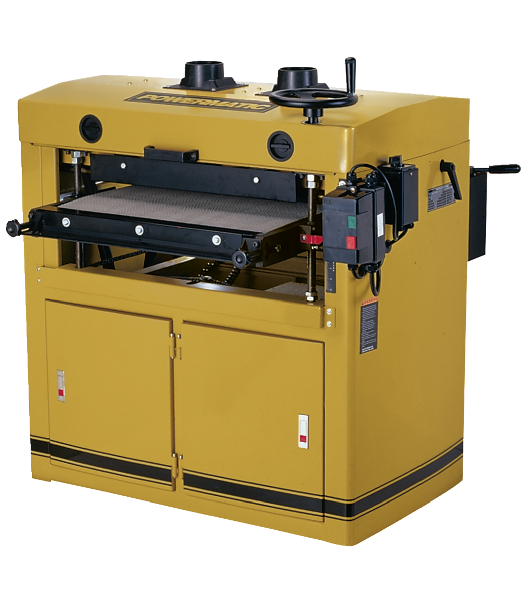 Finally, a production class Dual Drum Sander that is loaded with features. This machine features a 5HP motor to power the twin poly V-belts. The dual steel drums have a hard durometer rubber coating to assure a flat, mar free finish. Independently adjustable rear drum makes fine tuning easy. A heavy cast iron table incorporates four solid jackscrews with chain drive timing to keep it level at all times. The heavy-duty poly conveyor belt provides a positive grip on the stock. The 1/4HP feed motor is coupled to a two-speed forward/reverse gearbox that will sand 8 and 12 surface feet per minute. The heavy steel cabinet provides years of vibration free sanding, with plenty of storage space underneath.