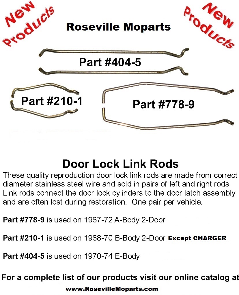 Door Lock Rod Set B-Body 68-70 EXC Charger Key Cylinder to Latch