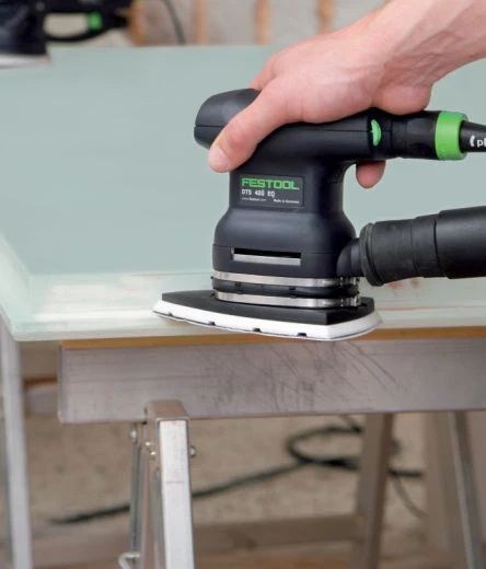 A great all around sander, the DTS 400 is designed for fine sanding small, angular surfaces that are difficult to reach. With a short 5/64″ (2 mm) stroke, this sander gives you a super-fine finished surface. Both compact and lightweight (2.4 lbs), the DTS 400 is the ideal sander for working on vertical and overhead surfaces. Step-less variable speed improves working results and the vibration-stop balancing makes your work less tiring.