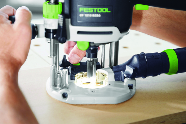 The LED light ring is directly integrated into the base panel and provides shadow free lighting directly on the workpiece all the way around. The separate battery unit is removable as required and can be recharged via the USB-C interface. The light can be retrofitted to all OF 1010 REBQ models starting from production month 09/2021.
