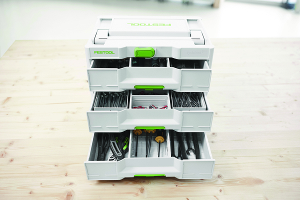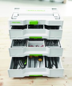- Modular Compatibility: The Sortainer³ can be combined with other units in the Festool Systainer system, allowing you to create a flexible storage setup. It’s also compatible with the SYS-RB roll board and SYS-Roll transport trolley for mobility.