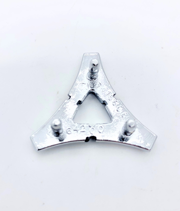 Reproduction door panel emblem. The original emblem was bradded to the door panel insert, this emblem will attach with nuts. The door panel will need to be clearance to allow room for the nuts