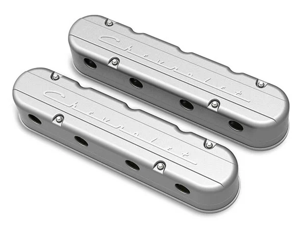 Holley aluminum LS valve covers will give your Chevrolet LS Series engines a totally new look. Manufactured from cast aluminum and available in 5 different finishes, natural cast, polished, satin black, factory orange, and gloss red