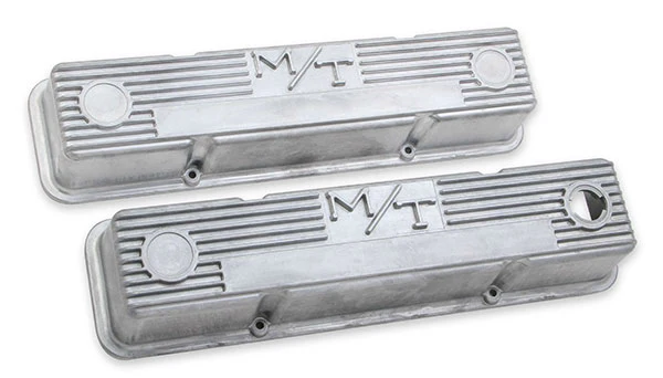 The Holley M/T valve covers are available in the new natural cast finish that offers a true nostalgic look on its own, or is ready for custom paint, as well as in the original fully polished, and satin black with machined fins/logo finishes that Holley & M/T helped make popular.