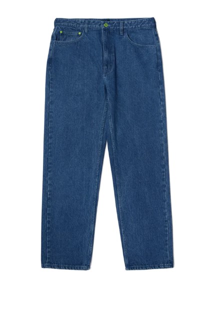 Offered in foundational colours with signature green contrast hits, the HUF Original Denim Pant is finished with a leather back patch, custom hardware and double-needle reinforced seams.