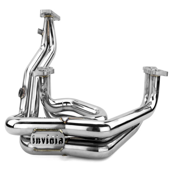 This is the Invidia Equal Length Big Piping Exhaust Manifold. This type of manifold is ideal for those of you looking to surpass large horsepower figures that would otherwise be limited by the flow capacity of the factory exhaust manifold. When shooting for 600+ horsepower, two of the main ingredients that seem to be key factors are a larger piping diameter along with an equal-length design. This, along with smooth bends being used as much as possible within the manifold design, will allow for an unobstructed flow path for the exhaust to exhale the exhaust gases as efficiently as possible for those with even moderate bolt-ons.