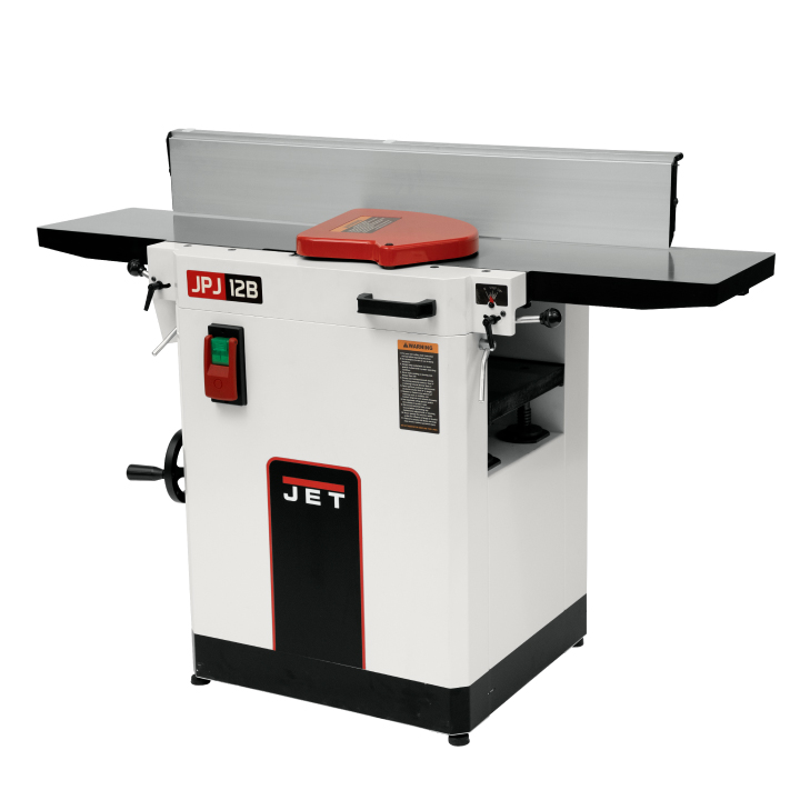 You don’t have to choose between buying a jointer or a planer – with the JPJ-12B, you can have both. Leave it to JET to design a machine that allows quick changeover between jointing and planing functions. This versatile machine features an extra-large aluminum extruded fence with centered controls for quick adjustments, a built-in dust chute capable of handling both planing and jointing operations and a powerful 3-horsepower motor that can handle the toughest lumber. A heavy-duty, fully welded steel base cabinet houses the motor and the planer table mechanism while providing solid mounting for the associated controls and support for the jointer table and fence assemblies. Best of all, the fence can stay put when changing over functions.