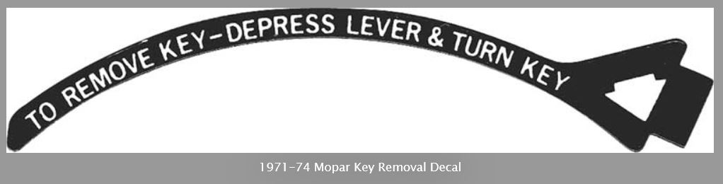 1971-74 Mopar Key Removal Decal