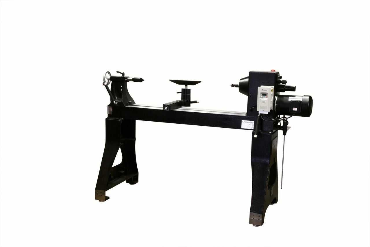 Electronic variable speed is obtained via a VFD that converts 1 phase input to 3 phase output, so even at low settings you will get an incredible amount of torque. The DRO gives you an accurate RPM readout at all times any fine adjustments are made electronically. Changing from high to low settings is made easy by using the quick release handle.