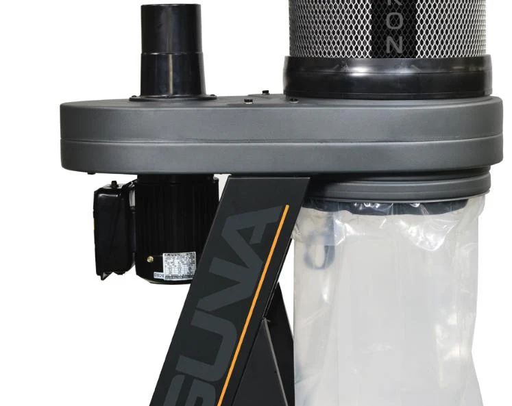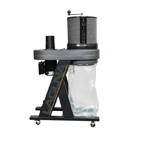 Laguna’s B|FLUX has a sleek design and power to match. You won’t have to fumble with a steel band to mount your lower bag, the b|flux comes with a patented SnapBand that makes changing the bag a breeze. Unlike most 1 HP units the b|flux feels solid and has a low dB rating. The horizontal dust chute provides optimum airflow and can swivel 180 degrees to make the 4″ outlet face downwards.