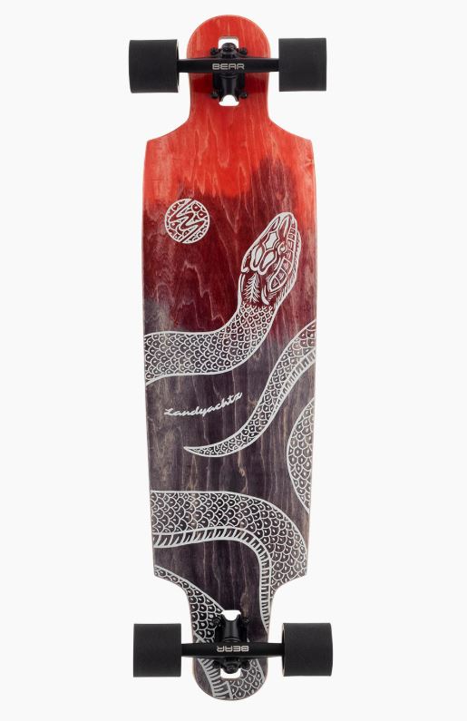 The tapered shape provides your front foot more leverage, naturally allowing the board to steer more from the front, giving it better control. Its drop-through design and rockered profile enhance control while keeping the ride height very low, making it a great option for both beginners and experienced riders alike. The larger of our two Drop Cat models, the 38″ version works best for people with larger feet or wanting more stability.
