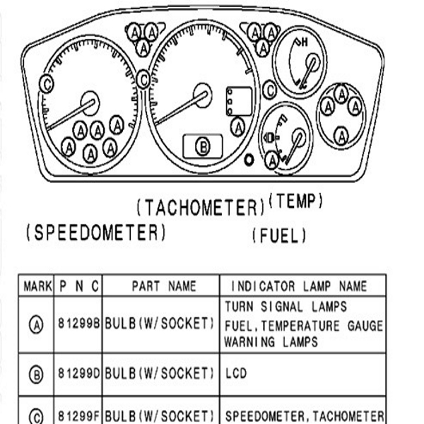 Genuine OEM Mitsubishi Gauge Cluster Light Bulbs. Labelled A in diagram.