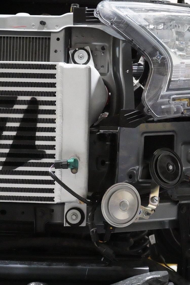 The latest update to the PDI intercoolers for the Mazda BT-50 makes easier fit with the updated facelift model through to the last of 3.2L (2022) model. The facelift model also saw a change to the radiator support panel, which allows us to fit the core further back without dropping the height (more than 20mm) and therefore allow the addition of the transmission cooler kit – see below if you have a PX1 as we think it should also fit there with some tweaks.