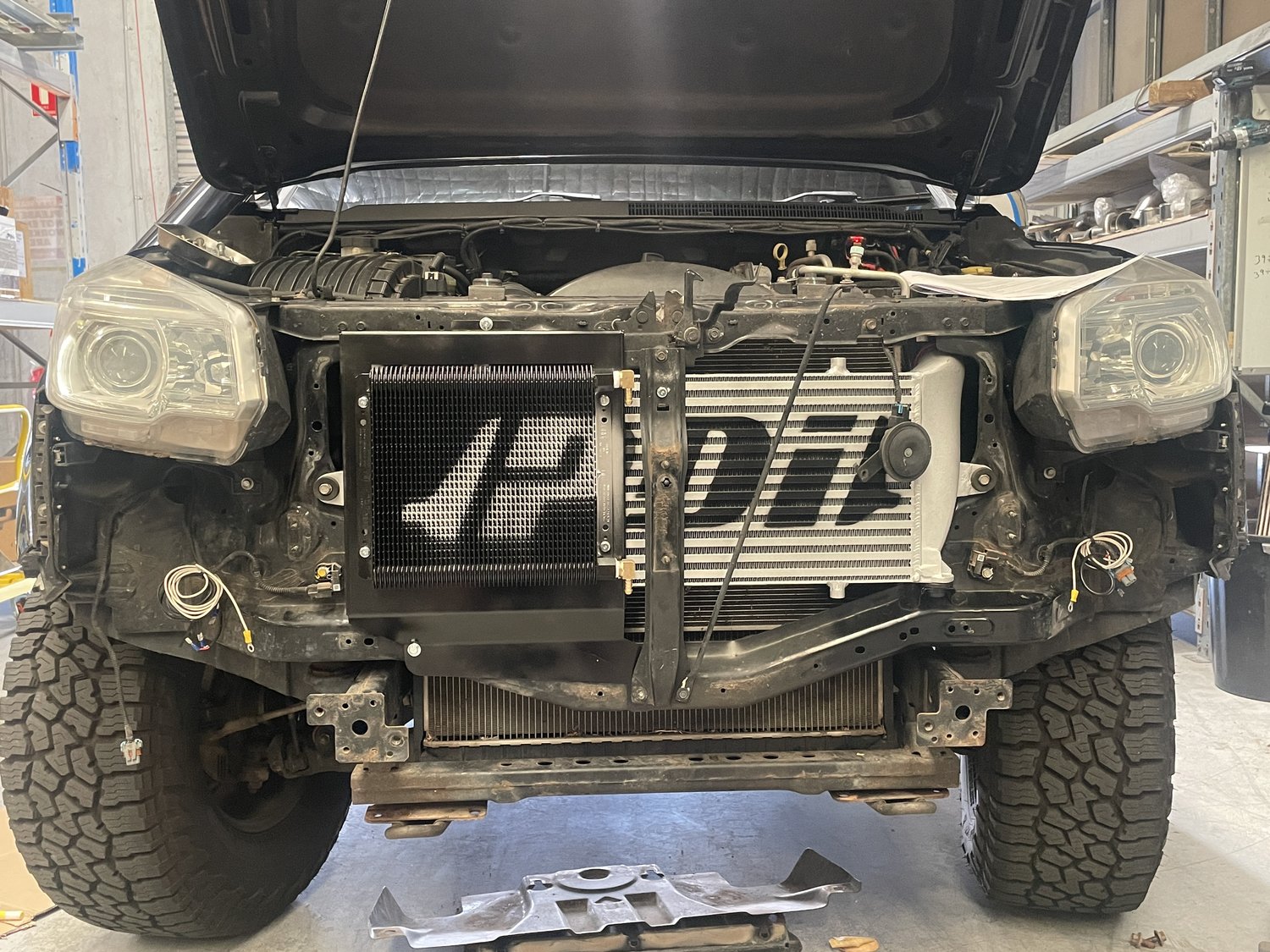 Transmission coolers aren’t always working – when the torque converter is “locked up” the transmission isn’t making anywhere near the heat it can do when the torque converter is working. Normally for highway driving the torque converter is locked up so there is no extra load being placed in front of the intercooler in this situation, however on the beach with the torque converter unlocked we want to give the transmission the best chance to not get too hot so prioritise transmission cooling.