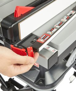 Miter guage is built with robust materials with many positive stops for the most commonly used angles.