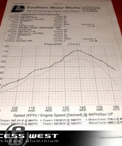 Before looking at the results below, we must say that dynos and top mounted intercoolers are not a great mix- no matter where you position the dyno fan there is still very little air flow into the bonnet scoop. Having said that both the stock intercooler and the PW upgrade intercooler were subject to exactly the same test conditions. A few other things worth mentioning. The test vehicle was a stock (apart from a BPM GT exhaust system) 05 WRX. Stock WRXs consistently put down about 90kw ATW on this dyno. The intercooler outlet temp probe was placed in the silicon hose joiner at the throttle body. We started off with the PW intercooler/splitter and did a base line power run. Result was 115.5kw. Looking at the intercooler outlet temp saw a peak of 51 deg C. We must say at this point we were a little disappointed. We saved all of the data collected during the run so that we could overlay it with the results from the stock intercooler. Next we installed the stock intercooler/splitter. Max power was 107.5kw. More disturbing was how badly the factory WRX intercooler performs.
