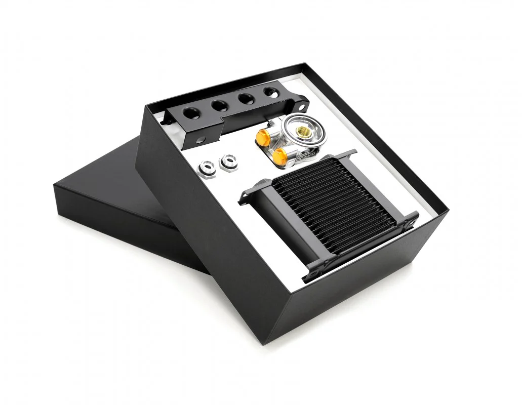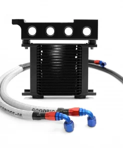 Each kit is supplied with a “Black Hardened” Powder coated mounting bracket. Laser cut and skillfully folded into position the brackets also feature pressed fixings for the oil cooler core to attach to and swaged holes to reduce weight and improve rigidity and strength.