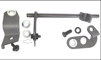 An excellent reproduction of the reverse lock-out torque shaft assembly used on 1970 B & E-Body small block equipped cars with manual transmissions. The kit includes the frame bracket with mounting bolt and bushing, the transmission bracket with bushing and mounting hardware, the torque shaft weldment with adjustable lever, two flat washers and the retaining clip. Components are zinc phosphate and oiled for original appearance. Reference Chrysler part numbers 2534 423, 2996 325, and 3467 625.