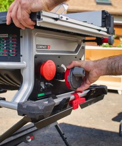 The SawStop Compact Table Saw features SawStop’s patented safety system with the mobility you need to work from anywhere – at home or on the job site. With a 10″ blade and durable construction, you’ll have the power and accuracy you need.