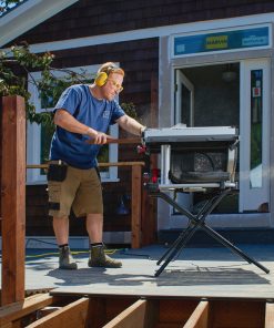 Portable Durability: Heavy-duty construction, that’s built to last, provides the stability you need for smooth cuts on the job site. The compact size, carry handle and on-saw storage mean you have everything you need at hand.
