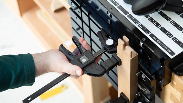 With a clamping capacity of 150 mm (6 inches) and a throat depth of 60 mm, these clamps offer robust holding power with a clamping force of 750 N. The clamps are compatible with all common T-Track systems, including the Shaper Workstation and Plate, ensuring secure and precise fixturing. The plastic handle and jaws are designed to prevent marking or damaging your workpieces, providing a reliable and gentle grip.