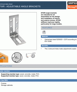 The Simpson Strong-Tie EFIXR553 is a compact, adjustable angle bracket specifically designed for internal timber fixings. Ideal for framing and joinery, this pre-galvanised bracket features two slotted bolt holes to allow for on-site adjustment, ensuring precise alignment. Its durable 2.0mm steel construction ensures reliable performance in a wide range of timber applications.