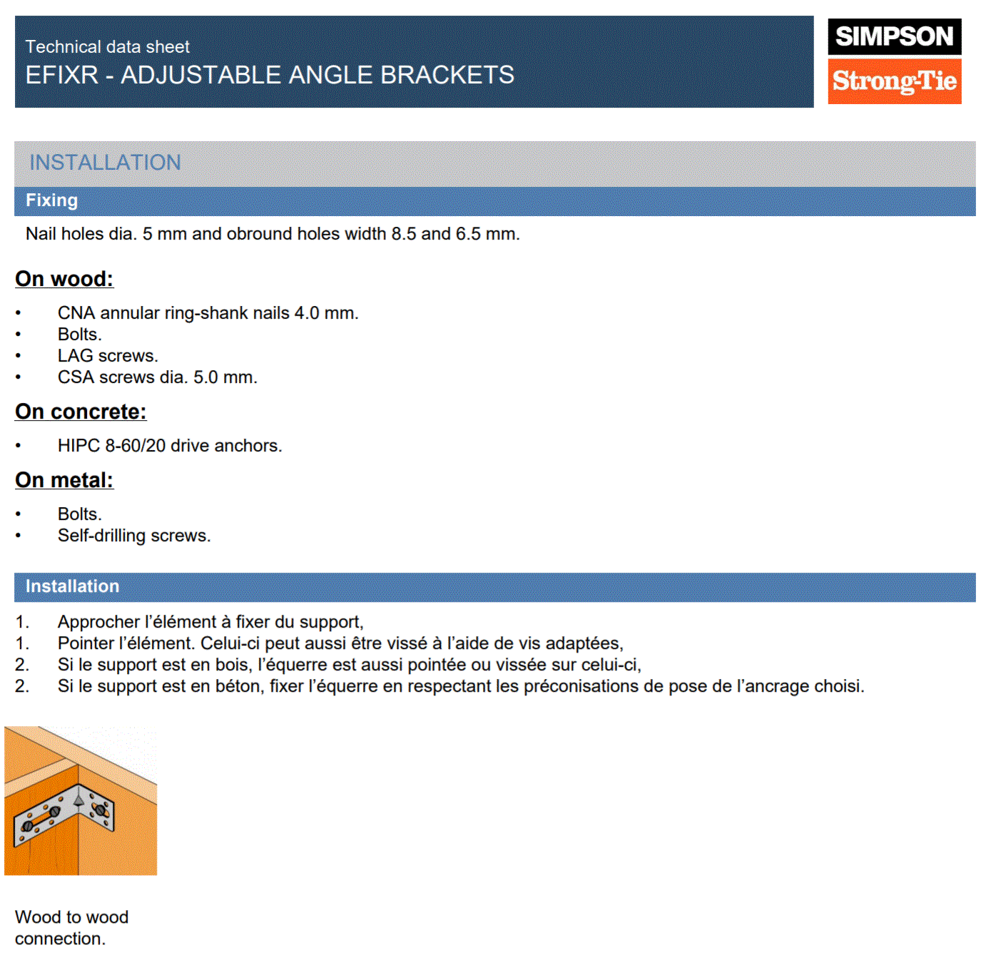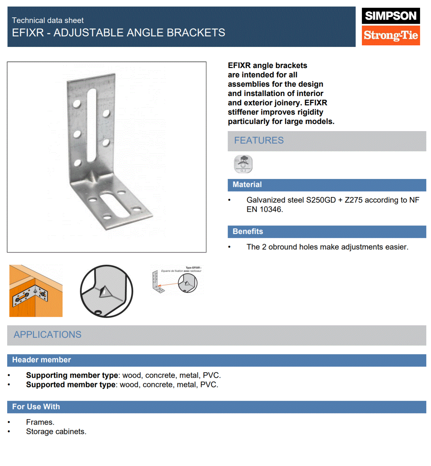 Ensure correct positioning and use of all required fasteners for structural integrity. Not intended for use in high-moisture or marine environments without additional protective treatment. Always install in accordance with applicable standards and building regulations.