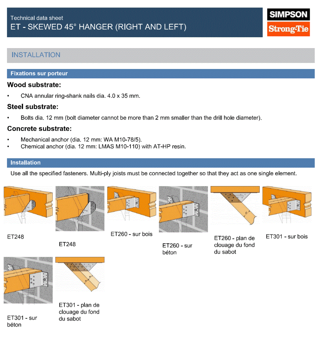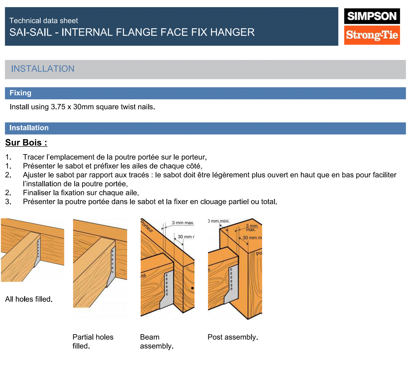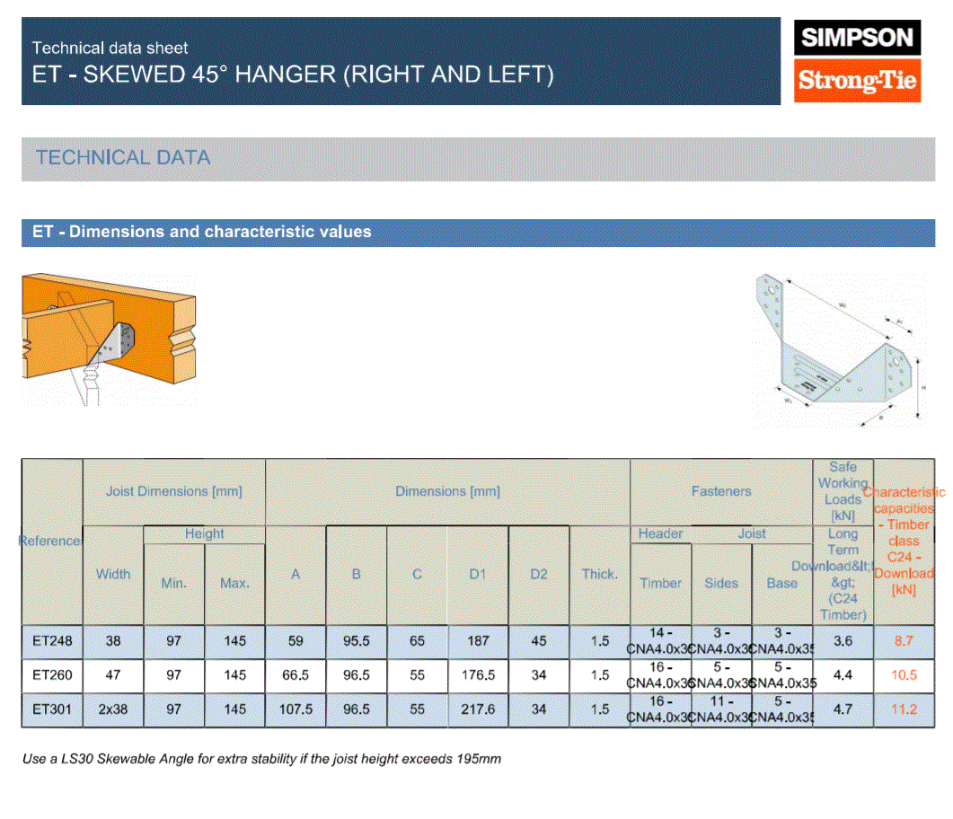 Hanger depth must be at least 60% of the joist height unless additional lateral restraint is provided at the top of the carried member. Always follow structural guidance and local regulations when specifying or installing joist hangers. Not suitable for marine or corrosive environments without additional treatment.