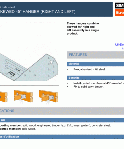 The Simpson Strong-Tie SAI500/91/2 is a high-strength concealed face-fix hanger, crafted for structural applications that demand additional load-bearing performance. Suitable for both timber-to-timber and timber-to-masonry connections, it provides a clean, hidden fixing solution ideal for architectural or exposed timber designs. The hanger is made from 2mm pre-galvanised mild steel and includes bolt holes for 12mm fixings, allowing use with Rawl R-KF2 and M12 studs when anchoring into masonry.