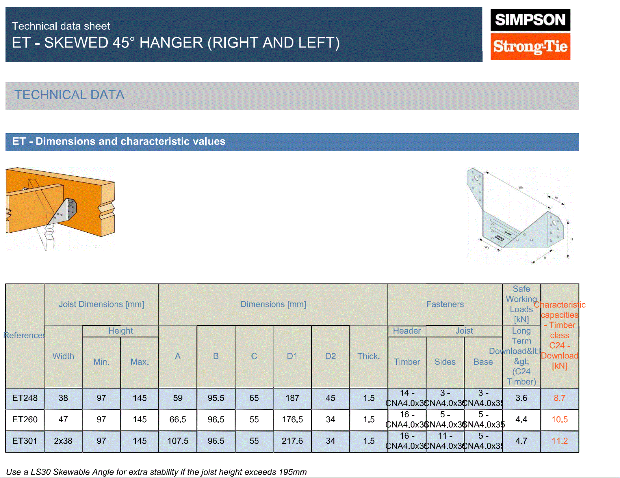 Accommodates 91mm wide joists and supports timber depths with a hanger height of 205mm