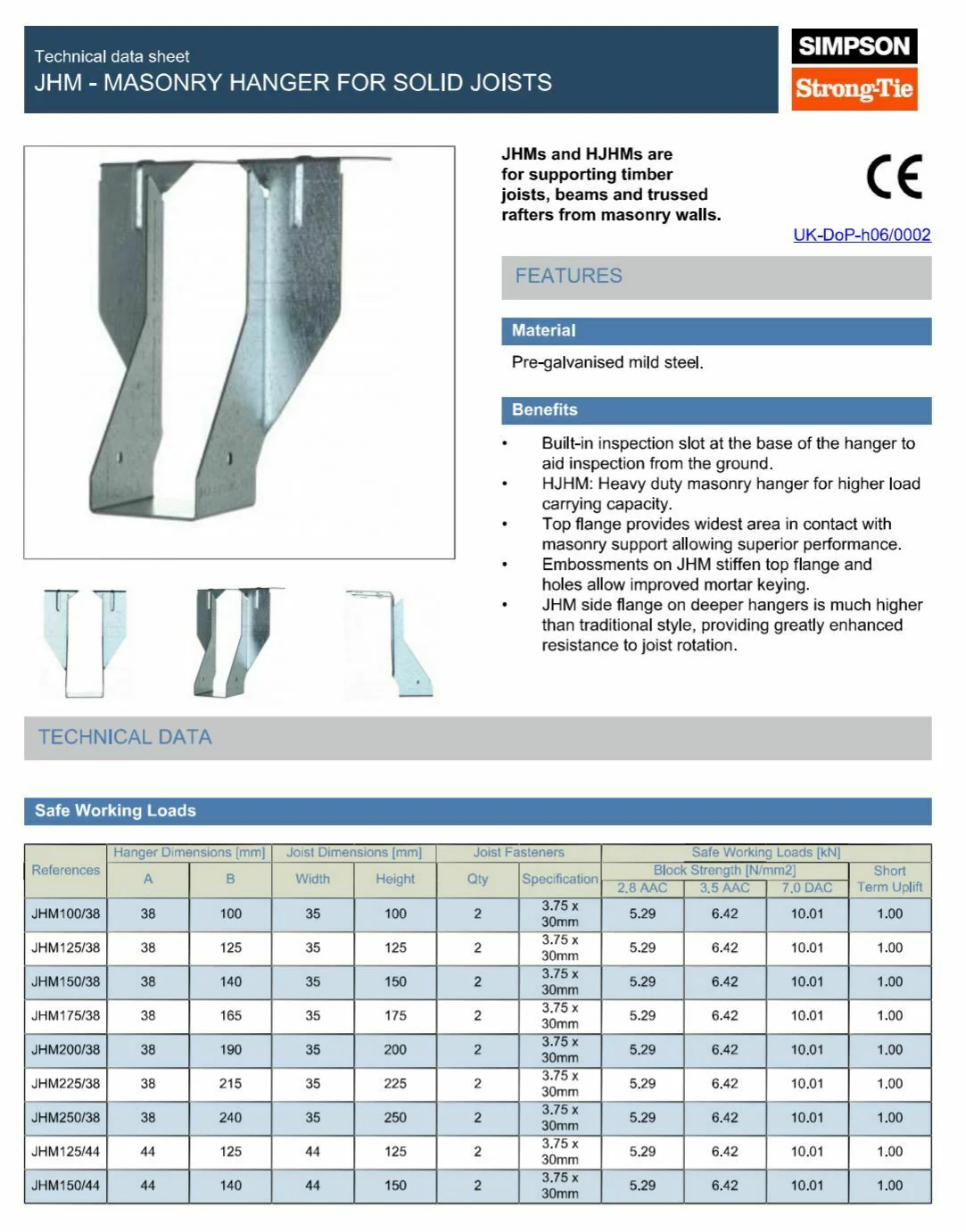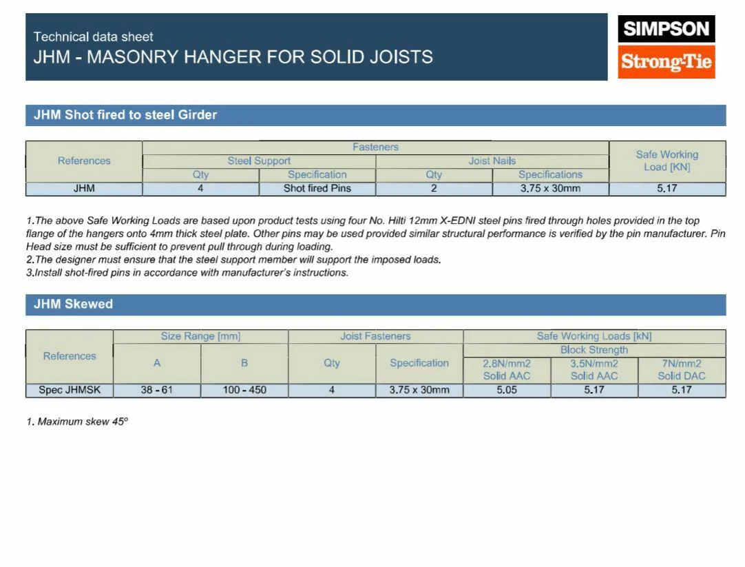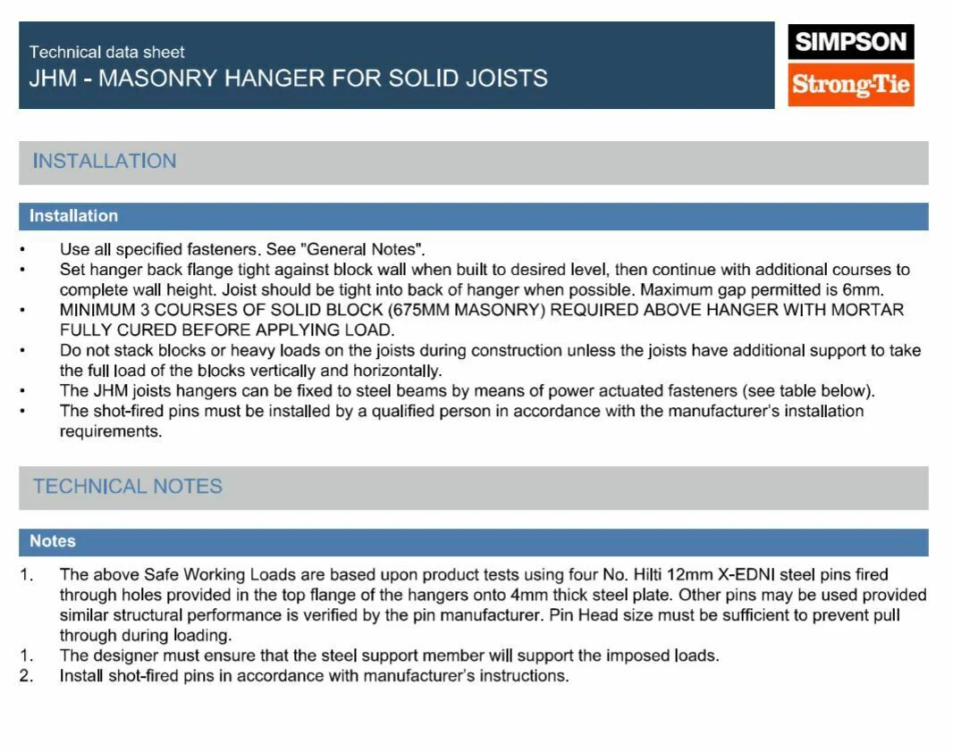Simpson Strongtie JHM125/47 Joist Hanger Masonry 125mm x 47mm x 1