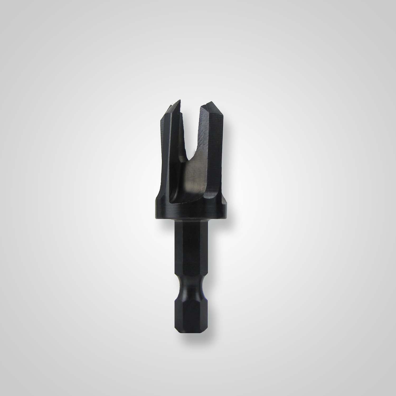 Snappy plug cutters produce a tapered plug, so you get a tight fit with no glue needed. The chamfered nose makes it easy to get the plug started into the bore.