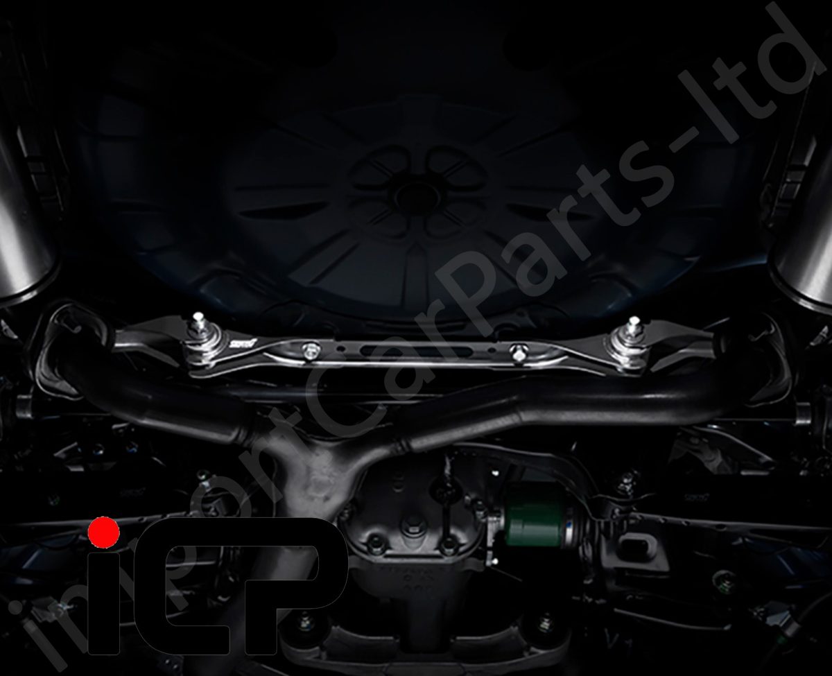 This is a stiffening component that connects the rear cross member to the vehicle body. As opposed to the standard rigid type, this product is equipped with a rubber bushing to divide the left and right sides, adding flexibility to the rear side of the vehicle. Special STI tuning of the transmission of power from front to rear during steering, and improved grip on all four wheels increase stability during cornering, ensure fast and responsive steering performance for the driver, and provide a comfortable driving experience.