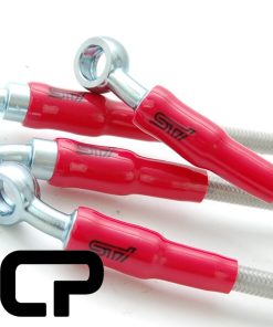 These are the absolute top of the line with braided stainless steel. Unlike the OEM rubber hoses, these items will not expand which will result it sharper brake response and feel. Get maximum safety and performance with these STI brake lines.