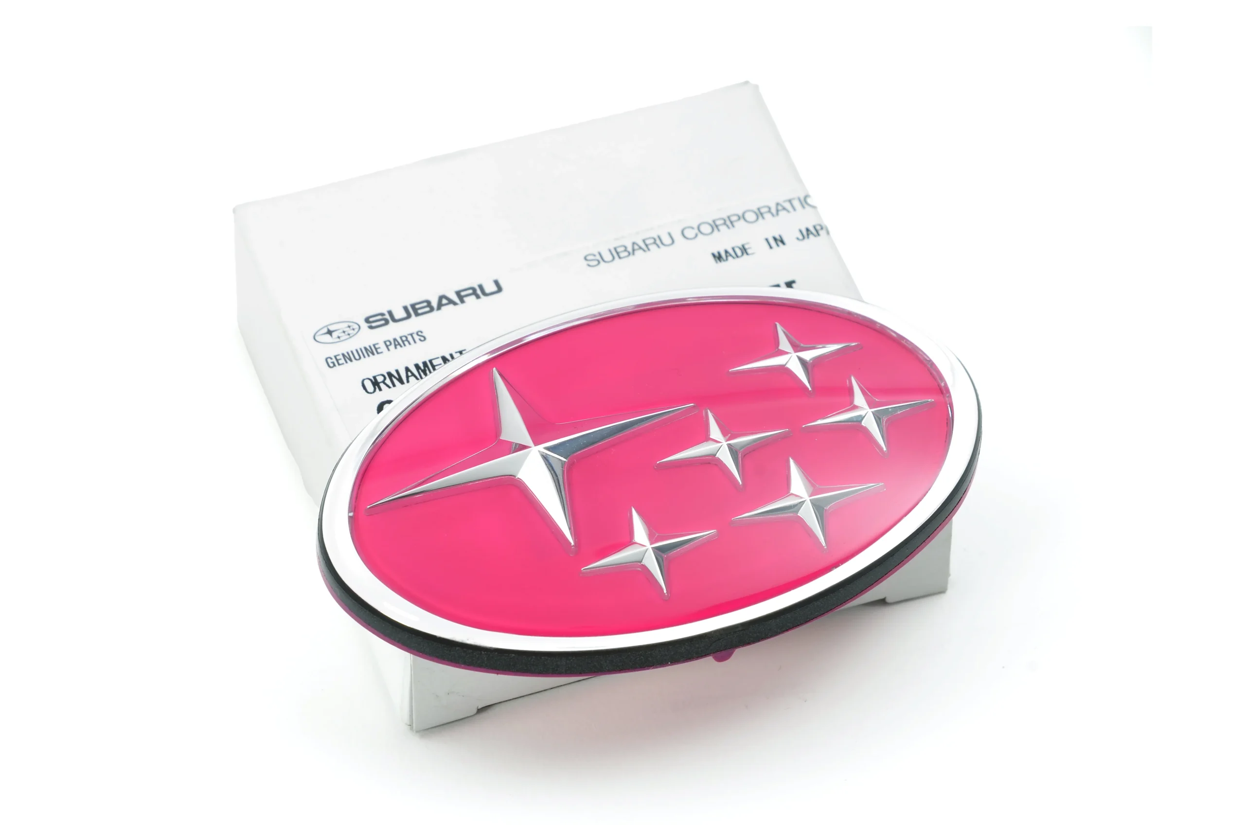 The Subaru pink stars STI grille badge was unique to the STI models and is now available from Roger Clark Motorsport as a replacement part for the Classic Impreza MY1992-2000.