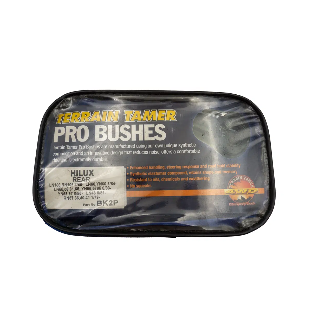 Designed specifically for Toyota Hilux LN106 models (1997-2005), this kit replaces your factory rubber bushes with Terrain Tamer’s renowned Pro Bushes. These aren’t your average replacement parts. They’re engineered from a proprietary synthetic elastomer compound that delivers the best of both worlds: the smooth ride of rubber with the incredible durability of a synthetic material.
